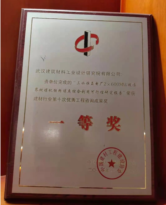 第九次建材行業(yè)優(yōu)秀工程總承包項目一等獎1)