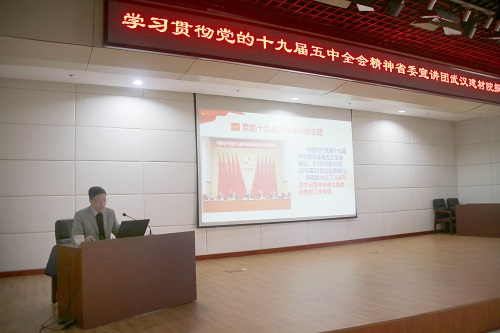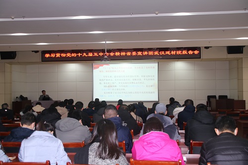 為深入學(xué)習(xí)貫徹黨的十九屆五中全會精神,按照省政府國資委黨委統(tǒng)一部署,12月15日上午,公司召開學(xué)習(xí)貫徹黨的十九屆五中全會精神省委宣講團(tuán)報(bào)告會。省委宣講團(tuán)成員、武漢大學(xué)經(jīng)濟(jì)與管理學(xué)院范如國教授來公司作宣講報(bào)告。會議由黨群工作部部長鄭雯主持,公司領(lǐng)導(dǎo)、黨員干部共計(jì)70余人參加宣講報(bào)告會。