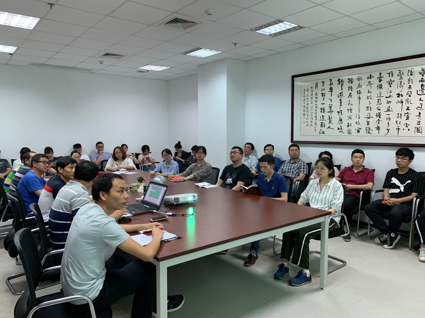 為深入貫徹落實黨的十九大精神,推進黨建工作向縱深發(fā)展,進一步加強基層黨組織建設(shè),充分發(fā)揮基層黨支部戰(zhàn)斗堡壘作用,按照公司黨委工作部署,結(jié)合黨群部工作安排,第二黨支部于2019年06月18日下午開展主題為“鼓勁揚帆再出發(fā)——全面開展‘不忘初心、牢記使命’主題教育”的支部主題黨日活動?;顒佑芍Р繒洀埶蓟壑鞒郑瑧?yīng)到正式黨員34人,實到正式黨員30人,入黨積極分子5人。公司黨委委員、副總經(jīng)理吳衛(wèi)平同志以普通黨員身份參加了此次主題黨日活動。