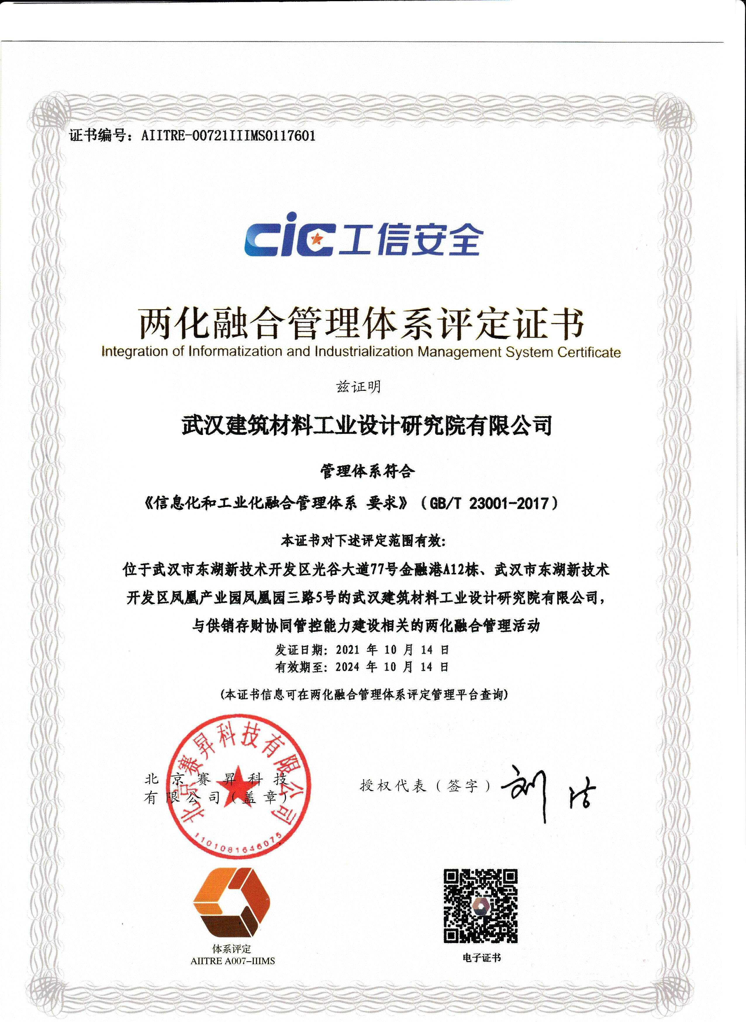 2021年10月14日,我公司順利獲得《兩化融合管理體系評定證書》,這標(biāo)志著我司在推進工業(yè)化和信息化融合方面取得了新突破。