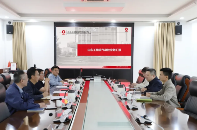 4月7日,武漢建筑材料工業(yè)設(shè)計(jì)研究院有限公司黨委書記白寧、研發(fā)中心主任秦賀勝、研發(fā)工程師李陽一行到山東工陶院調(diào)研,雙方就氣凝膠材料與新型建材結(jié)合應(yīng)用展開座談交流。
